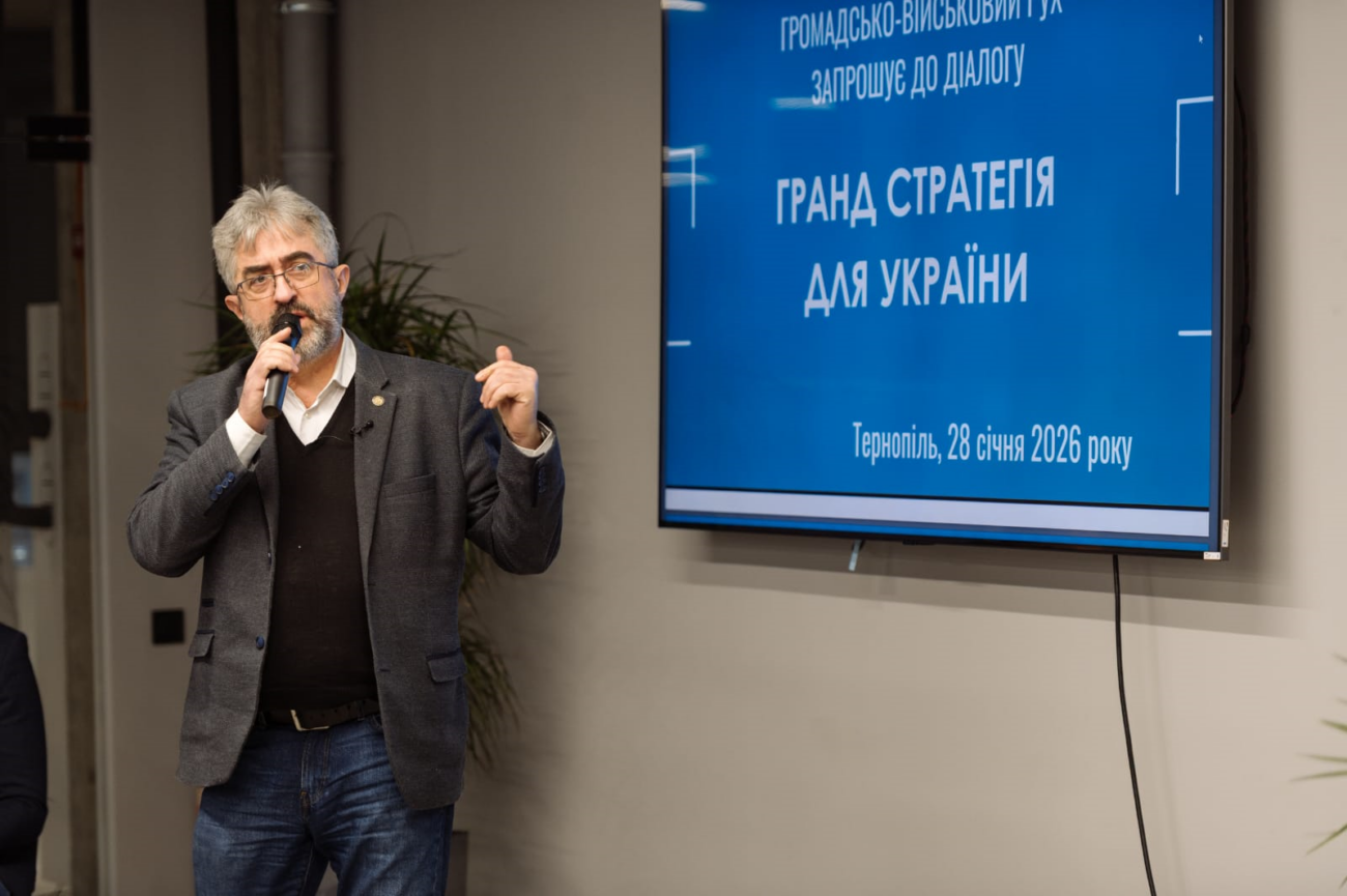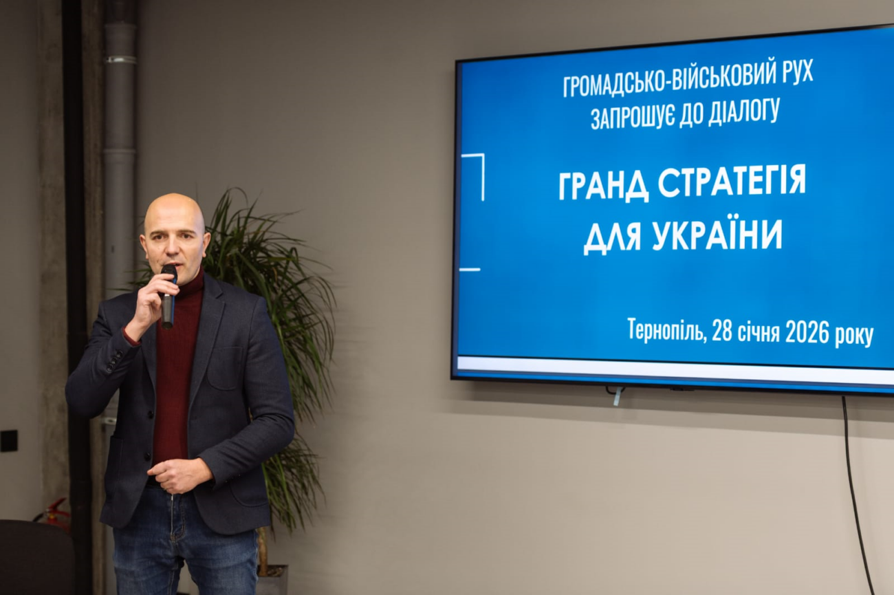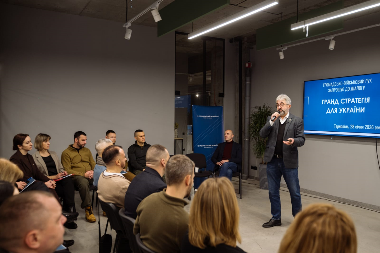 28 січня у Тернополі відбулася чергова зустріч у межах загальнонаціонального діалогу «Гранд стратегія для України», ініційованого Громадсько-військовим рухом. Подія об’єднала представників громадянського суспільства, академічної спільноти, місцевого самоврядування, бізнесу, медіа, військових і ветеранів для обговорення засад нового Суспільного договору в умовах війни та тривалих безпекових викликів.