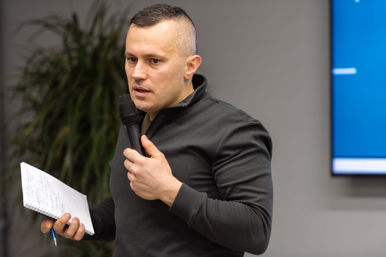 Координатор ініціативної групи зі створення Громадсько-військового руху, учасник бойових дій Олексій Івашин підкреслив, що така дискусія є вкрай необхідною, адже тривалий час в Україні бракувало системного осмислення місця держави у світі та балансу між правами й відповідальністю. Він розповів про концепцію оборонної демократії, яку розвиває рух, і принцип «Служи або допомагай!», що, за його словами, уже став основою життя для сотень тисяч українців — військових, волонтерів і їхніх родин. Цей підхід, на його переконання, має зберегтися і в післявоєнний період.