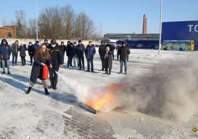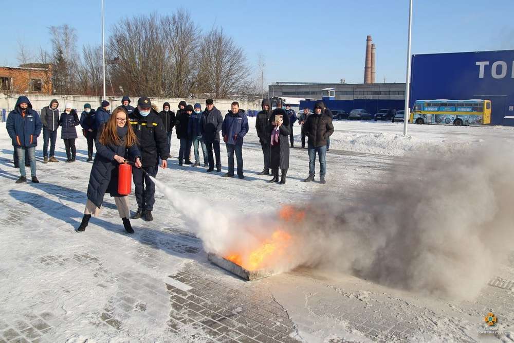 На завершення зустрічі працівники закладу під наглядом професійних вогнеборців виконали практичну вправу щодо використання переносного вогнегасника для ліквідації умовної пожежі.