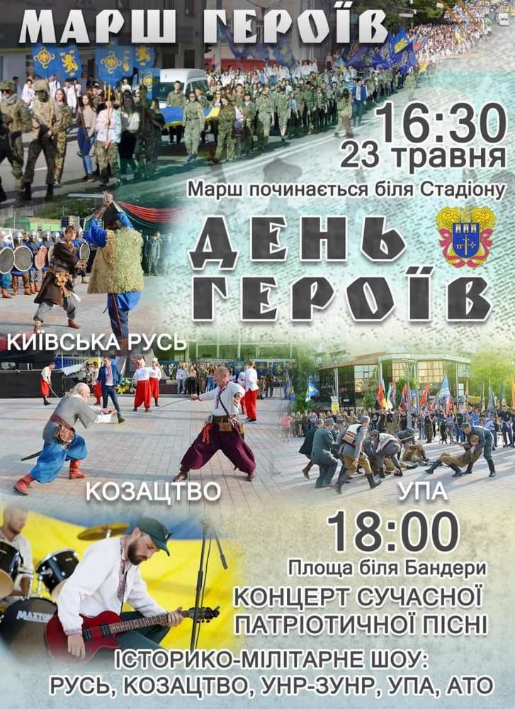 23 травня, у неділю, о 16.30 від міського стадіону імені Романа Шухевича на проспекті Степана Бандери стартує марш до Дня Героїв.