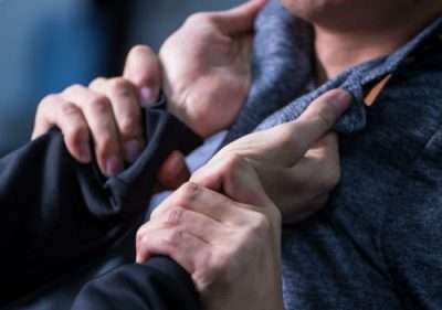 У той момент, коли вони оформляли документ, до них з автівки вийшли син та батько й почали сперечатися. Вони не погоджувалися зі штрафом. Словесний конфлікт переріс у бійку.