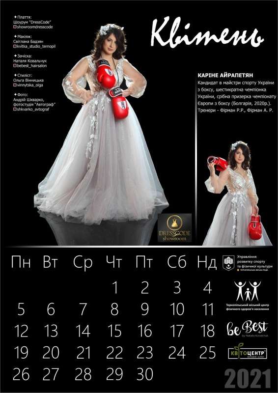Герої календаря – яскраві та гідні представники свого напрямку, майстри спорту, переможці та фіналісти змагань.
