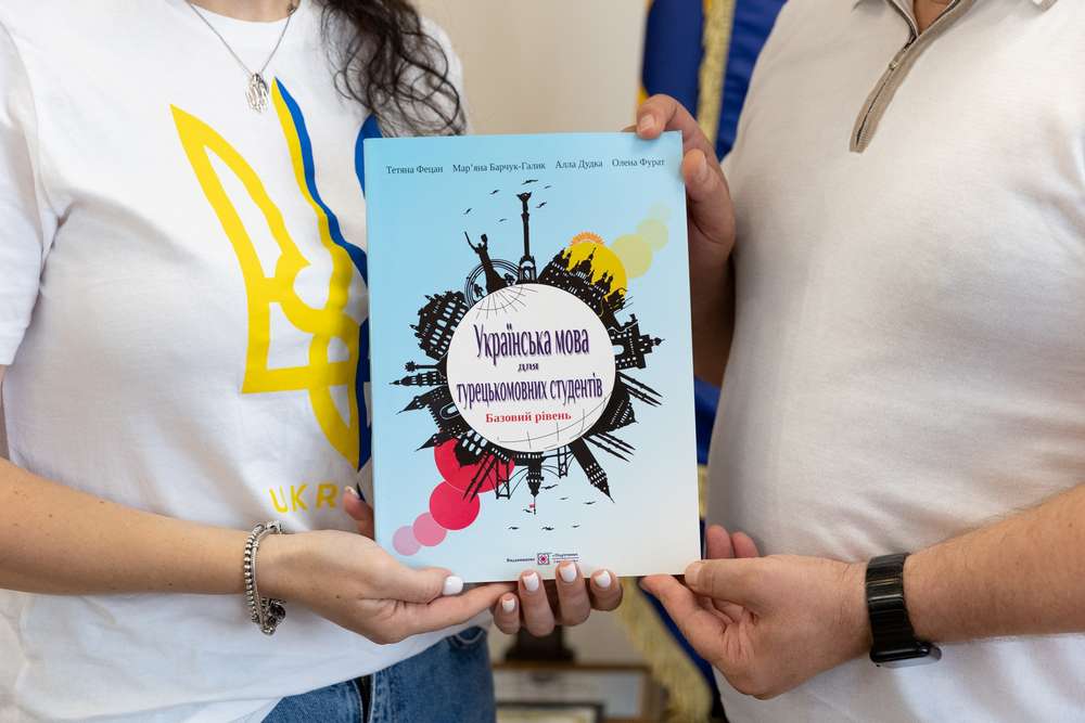 На зустрічі вперше презентували книжку ,,Українська мова для турецькомовних студентів. Базовий рівень”. Цей підручник реалізовано в рамках співпраці Тернопільської обласної військової адміністрацї з Українським Товариством Взаємодопомоги в Стамбулі.