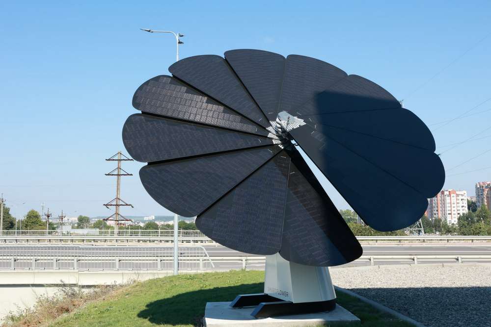 У Тернополі презентували сонячну панель Smartflower. Це перша в Україні сонячна станція, яку можна переміщати. Вона працює за принципом соняшника: переміщується за сонцем, щоб збирати якнайбільше сонячного світла.