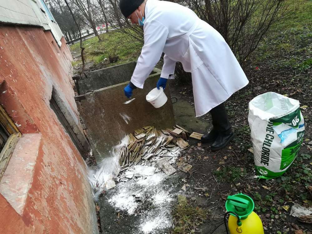 У Тернополі продезінфікували контактні поверхні у дворі, де була відловлена лисиця, хвора на сказ