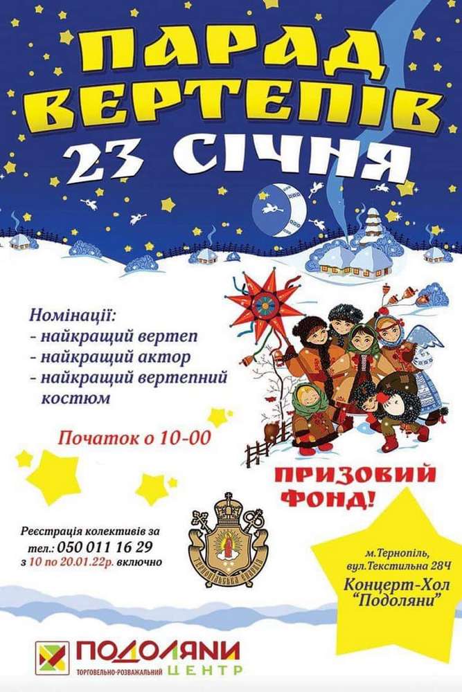 У неділю, 23 січня, в Тернополі пройде парад вертепів. Захід відбудеться в ТРЦ «Подоляни».