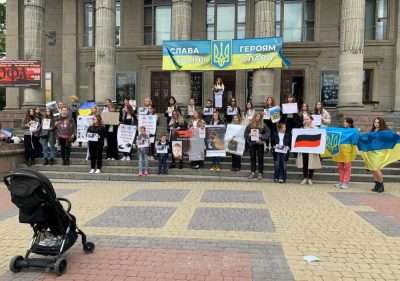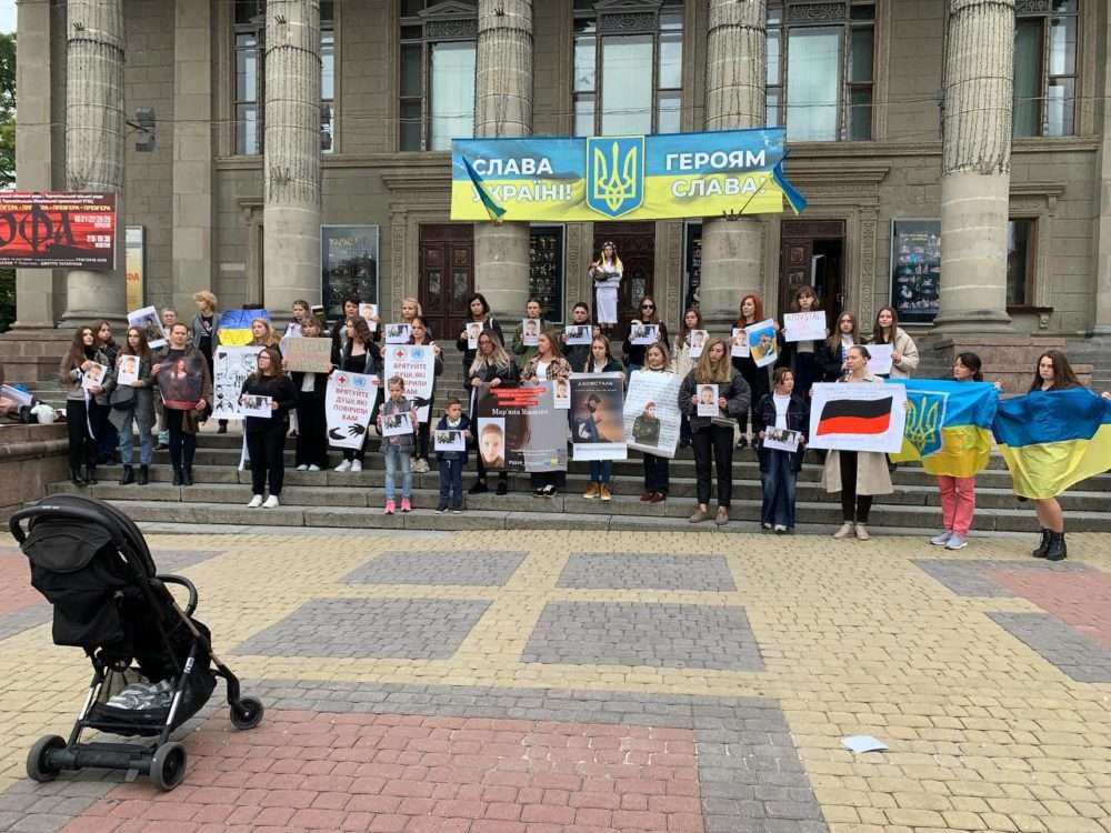 Меседж, який передавали учасниці акції – “Це могла бути я, бо я – українка”. Підтримали ініціативу і діти, які тримали у руках світлину полоненої жінки з написом “ Це могла б бути моя мама, бо вона – українка”.