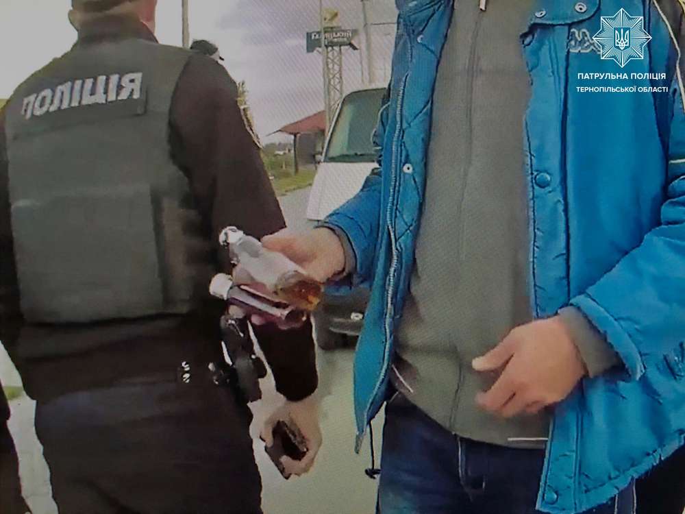 Патрульні провели поверхневу перевірку та виявили у кишенях водія дві пляшки з алкоголем.