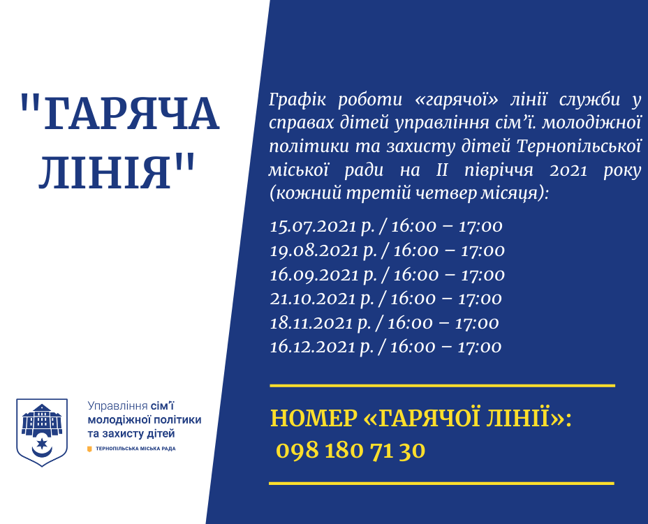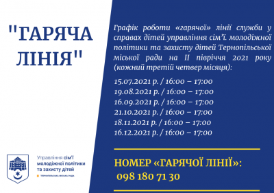 З метою вдосконалення роботи та надання оперативної інформації з питань соціального захисту неповнолітніх жителів Тернопільської громади, в службі у справах дітей відтепер працює «гаряча лінія».