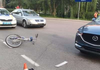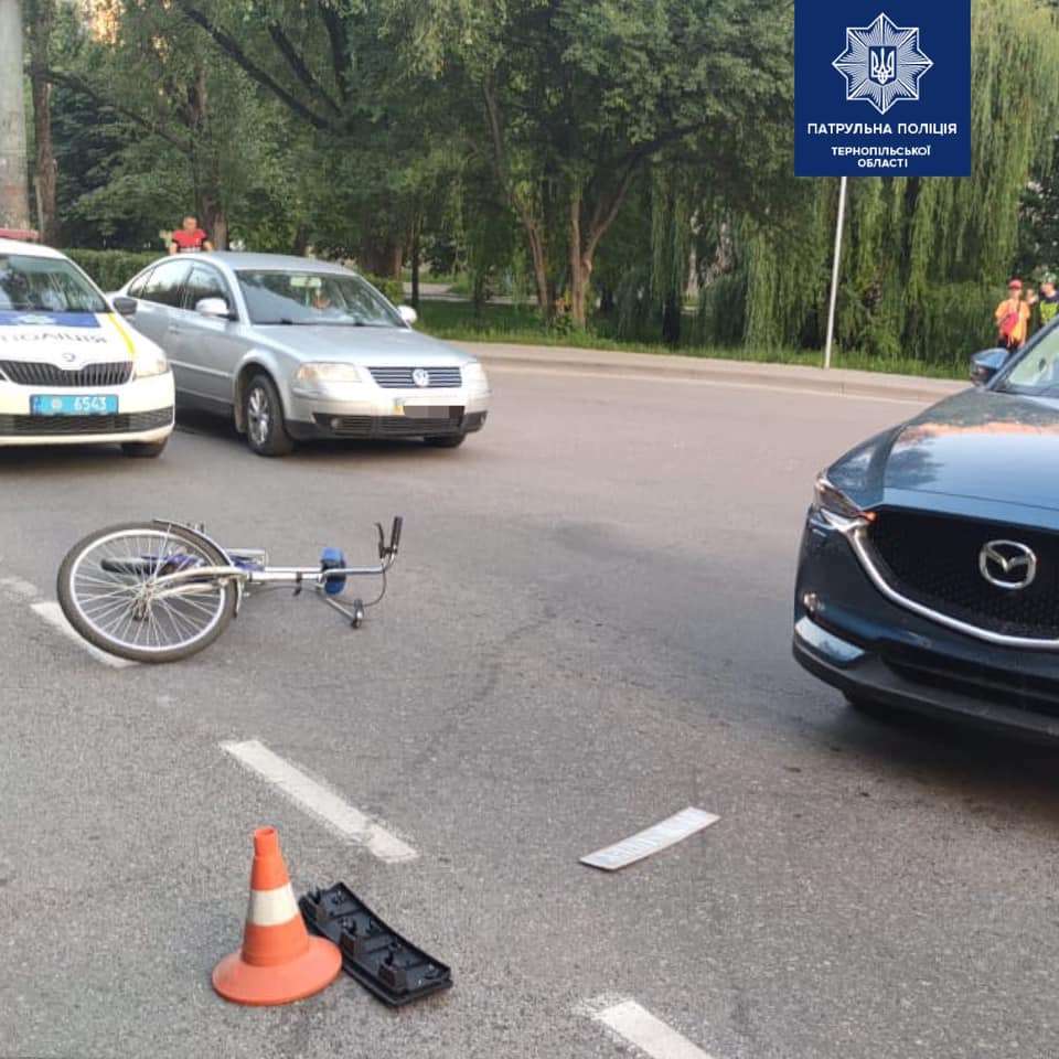 У Тернополі, на перехресті вул. М. Кривоноса – вул. В. Громницького, водій автомобіля Mazda здійснив наїзд на велосипедиста.