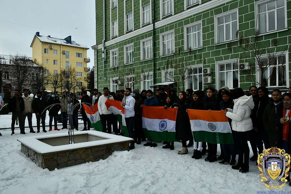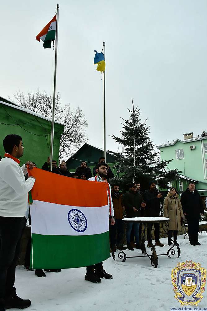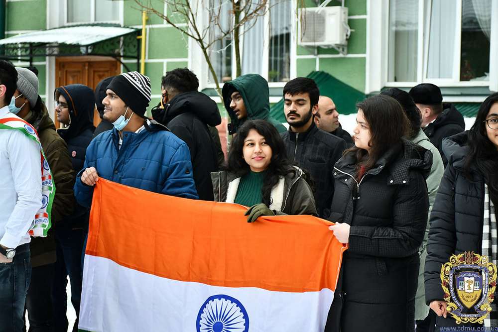 Громадяни цієї країни, які навчаються в тернопільському виші, зібралися в дворику адміністративного корпусу ТНМУ де підняли державний прапор Індії та заспівали її Гімн.