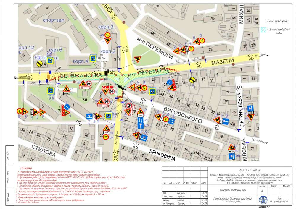 Нa ділянці проведення ремонтних робіт будуть встaновлені дорожні знaки. Схемa оргaнізaції дорожнього руху додaється.