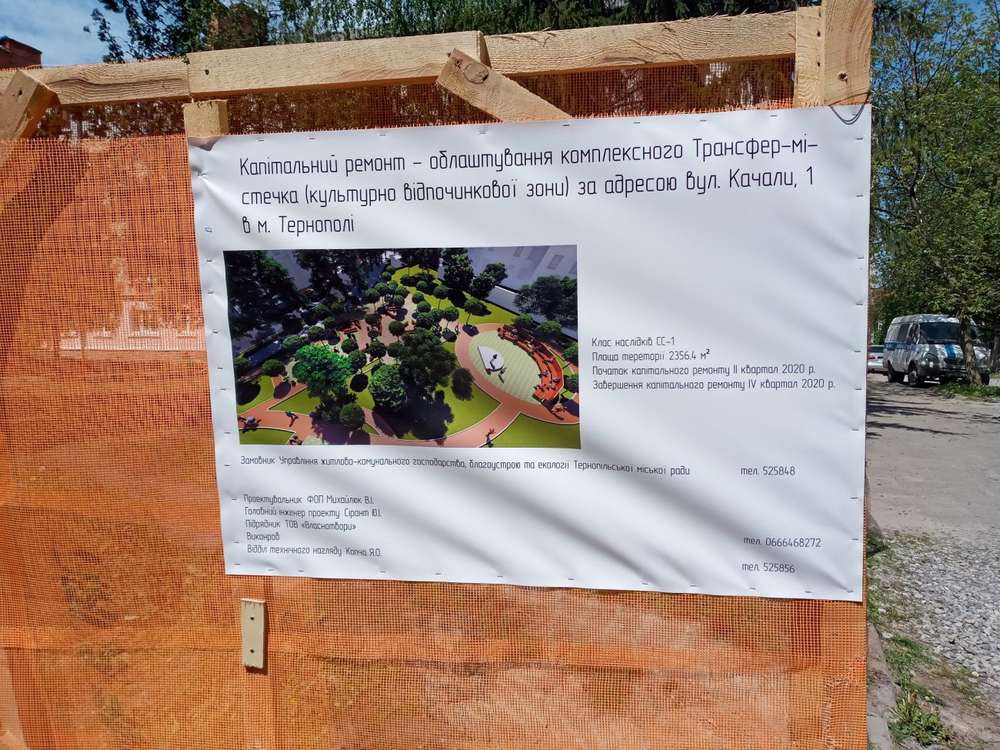 У Тернополі розпочали облаштування комплексного тренсфер-містечка. Нова відпочинкова зона з’явиться біля будинку на вул.Качали, 1.