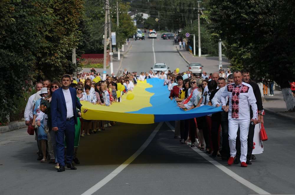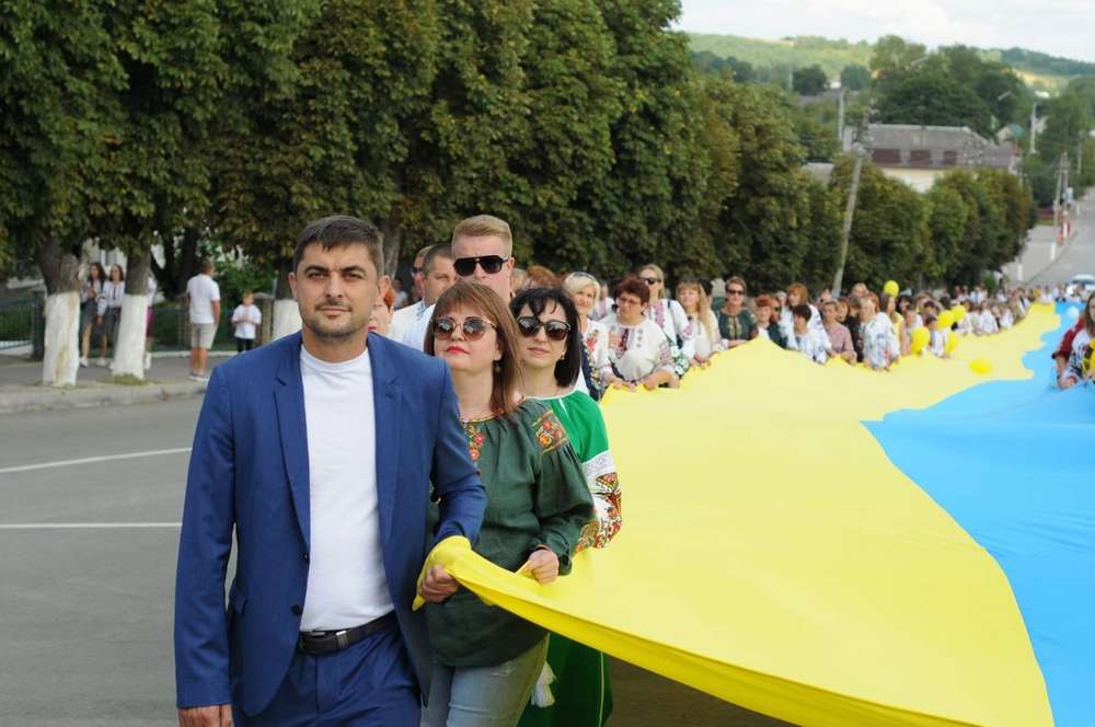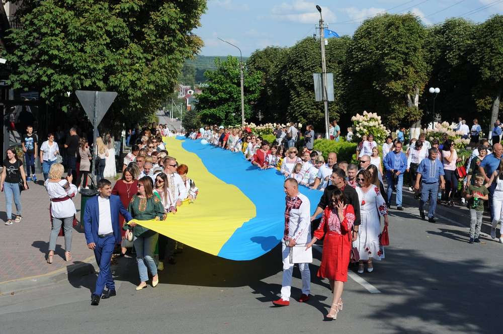 З нагоди Дня прапора та 30-ї річниці Незалежності України у Вишнівецькій громаді відбулася урочиста хода – центральними вулицями міста пронесли 100 метровий прапор.