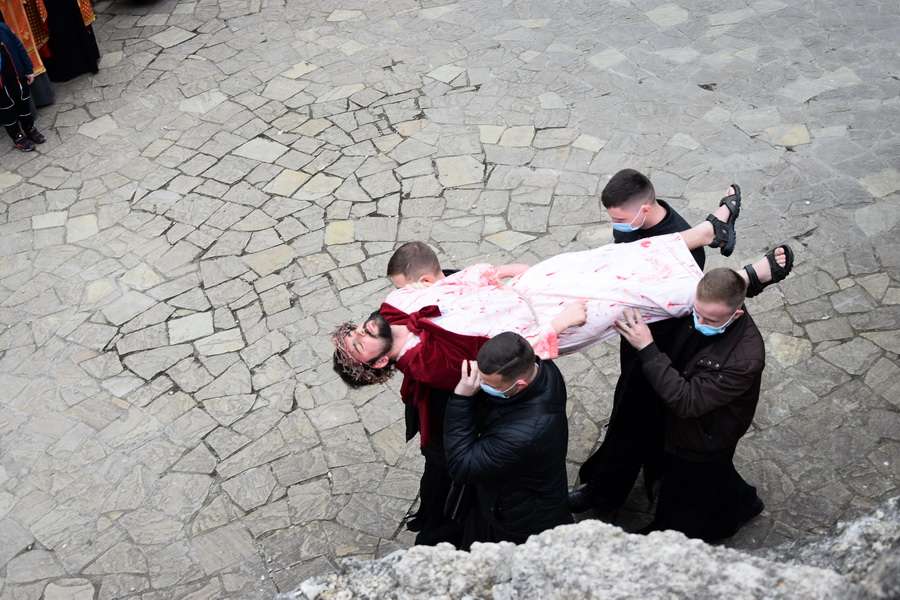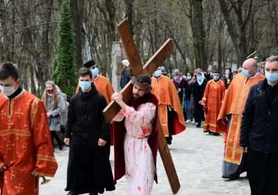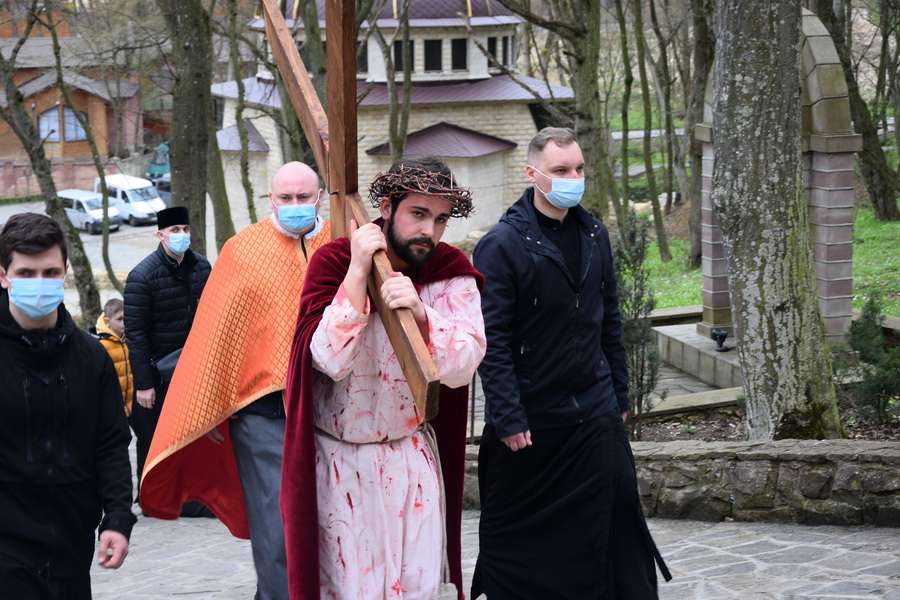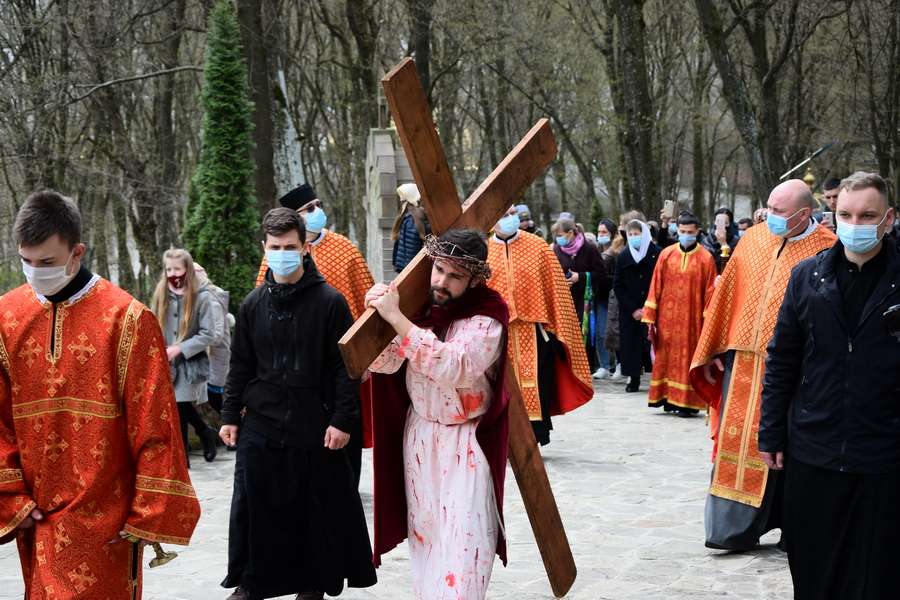 Відтак розпочалася театралізована Хресна хода, яка пройшла 14 стаціями на пагорбі поблизу чудотворного джерела Зарваниці.