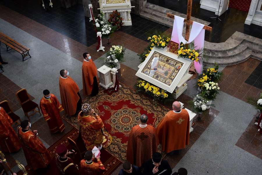 У Велику П’ятницю Страсного тижня владика Василій Семенюк, архиєпископ і митрополит Тернопільсько-Зборівський УГКЦ, очолив Вечірню з виставленням Плащаниці у малій базиліці Матері Божої Зарваницької.