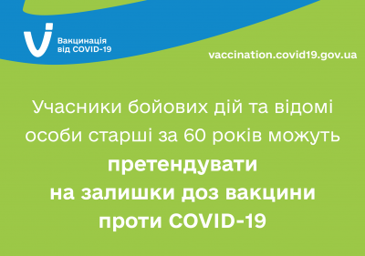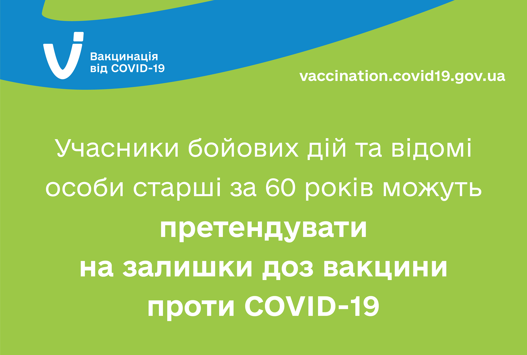 Дізнайтеся більше про вакцинацію від COVID-19 на сайті vaccination.covid19.gov.ua та за телефоном контакт-центру 0 800 60 20 19. Запишіться в чергу на вакцинацію на сайті або в мобільному додатку «Дія».