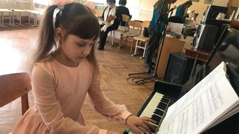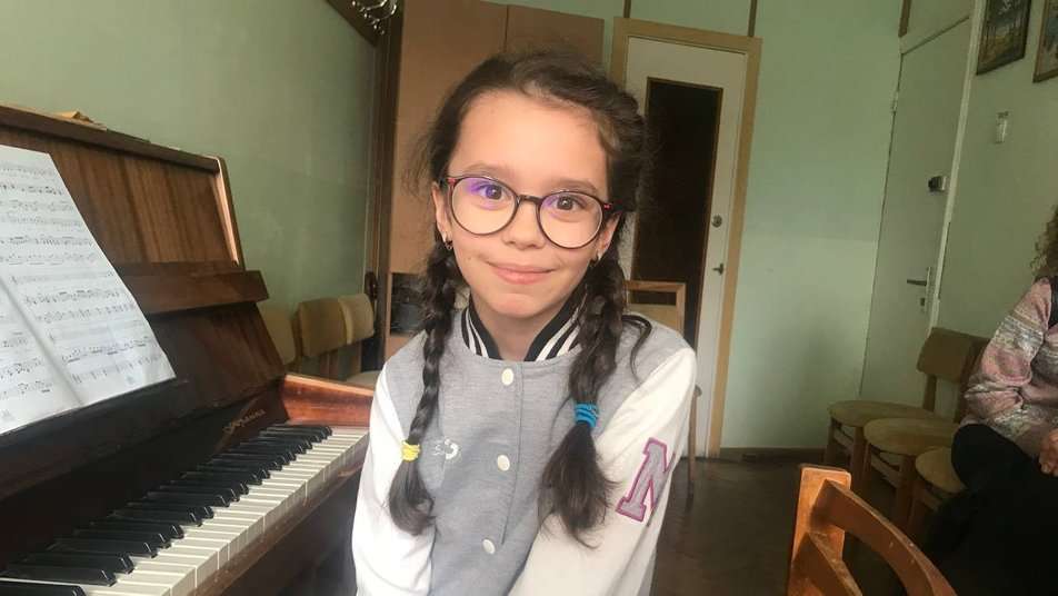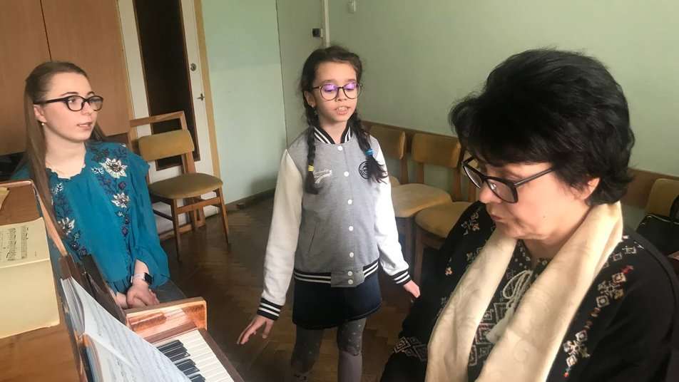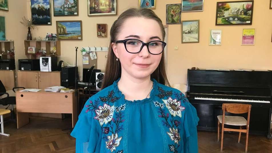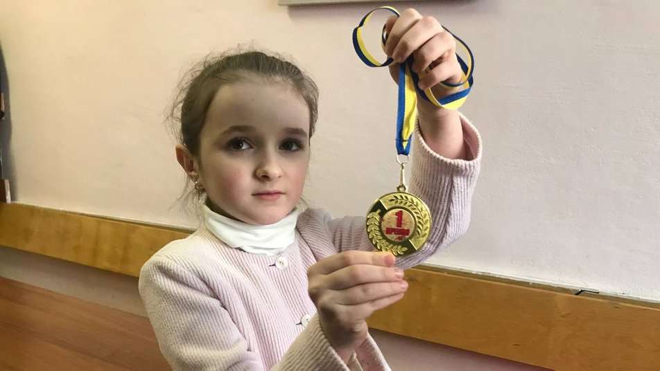 На заняття з вокалу до мистецької школи прийшла восьмирічна Аріна Клочко. Дівчинка показує медаль, яку отримала за перше місце в Міжнародному музичному конкурсі талантів “SOUL”.