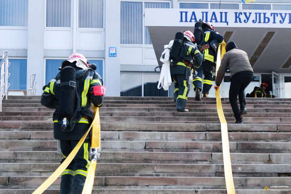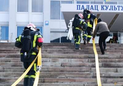 Рятувальники провели тактико-спеціальні навчання з гасіння умовної пожежі в Тернопільському палаці культури «Березіль» ім. Леся Курбаса.