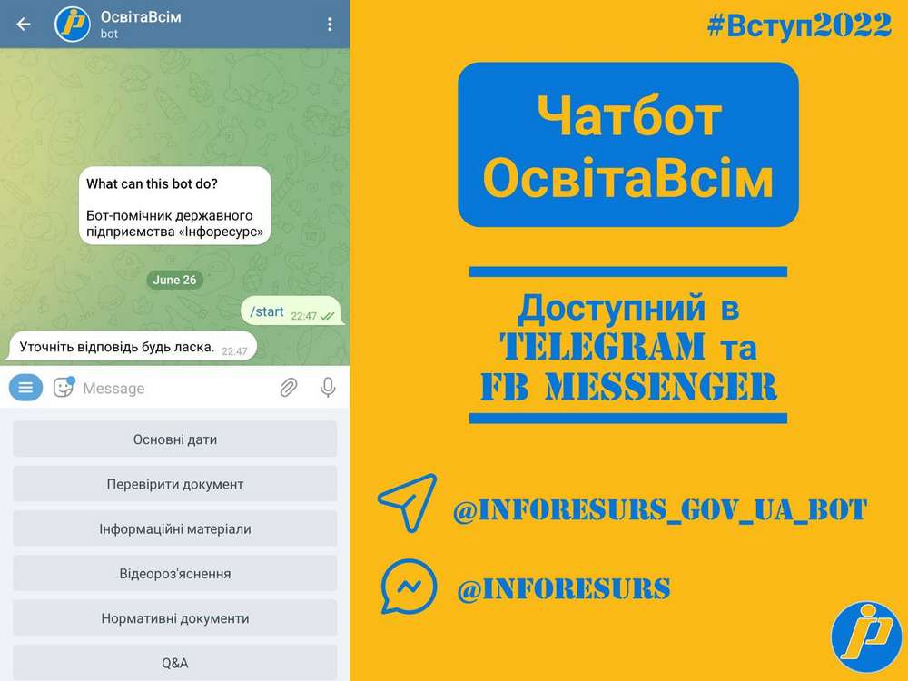 Основні дати вступної кампанії для обраної траєкторії вступу, контакти служби підтримки чи відеоінструкції з реєстрації електронних кабінетів тернопільські абітурієнти можуть знайти у чатботі «ОсвітаВсім»