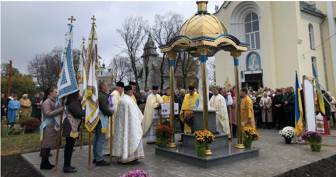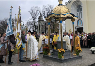 Отець Іван Козлик спільно зі священнослужителями Козівського деканату відслужили Божественну літургію, провели чин освячення води та освятили пам’ятний знак.