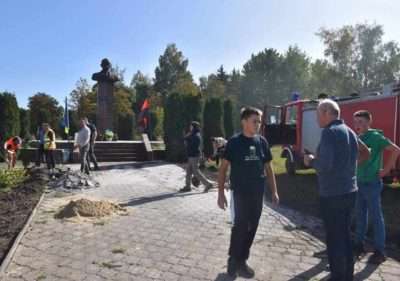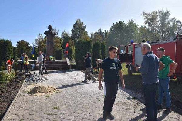 До благоустрою долучилися й учні Бучацького ліцею. Співаючи патріотичних пісень хлопці допомагали з надзвичайним ентузіазмом і завзяттям.