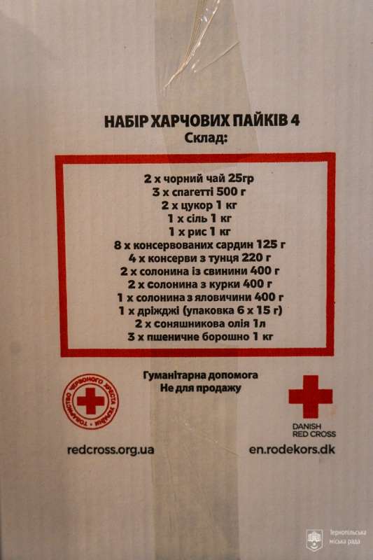 «Спільно з міською організацією Товариства Червоного Хреста розпочинаємо видачу продуктових наборів і засобів гігієни, які першочергово отримають внутрішньо переміщені особи, що мешкають у нашому місті, та багатодітні сім’ї. Перших 500 пакунків з продуктами і засобами гігієни уже готові та будуть передані. Попередньо спільно з працівниками Червоного хреста визначено, які є потреби у людей і підібрано у набори необхідні речі та засоби,  – зазначає міський голова Сергій Надал. – З початку війни Тернопіль надав прихисток десяткам тисяч переселенцям і наразі понад 28 тисяч таких осіб залишились жити тут на тривалий період. Упродовж цього часу волонтери, іноземні партнери та небайдужі мешканці допомагали, щоб забезпечувати внутрішньо переміщених осіб продуктами харчування, одягом і всім необхідним. Дякую сьогодні кожному, хто долучався до підтримки наших громадян. Разом ми переможемо».