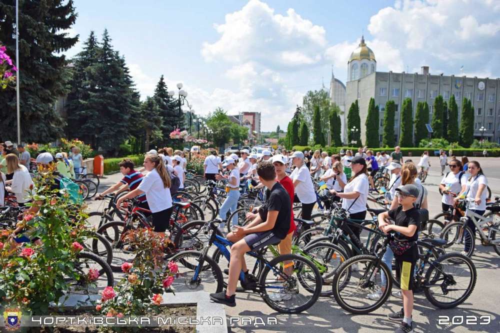 У Чорткові відбувся масштабний велопробіг центром міста . Десятки велосипедистів долучились до акції.
