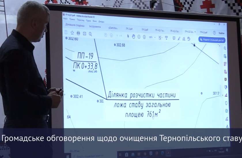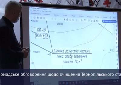 У Тернополі відбулося громадське обговорення щодо проведення капітального ремонту, розчистки від наносів та донних відкладів для покращення гідрологічного режиму та санітарного стану окремих прибережних ділянок ложа водосховища «Тернопільський став» в Тернополі.