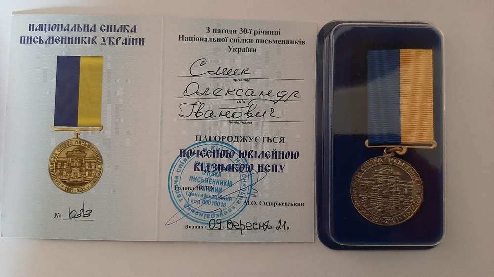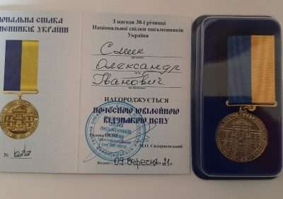 Почесною відзнакою Національної спілки письменників України нагороджено відомого тернопільського поета, пісняра, барда та громадського діяча Олександра Смика.