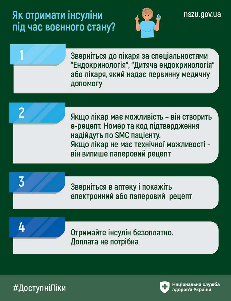 В інтересах пацієнта  нині інсуліни відпускаються за електронним або паперовим рецептом.  У разі перебоїв з електроенергією чи інтернетом, лікар зможе виписати рецепт, а аптека його погасити.