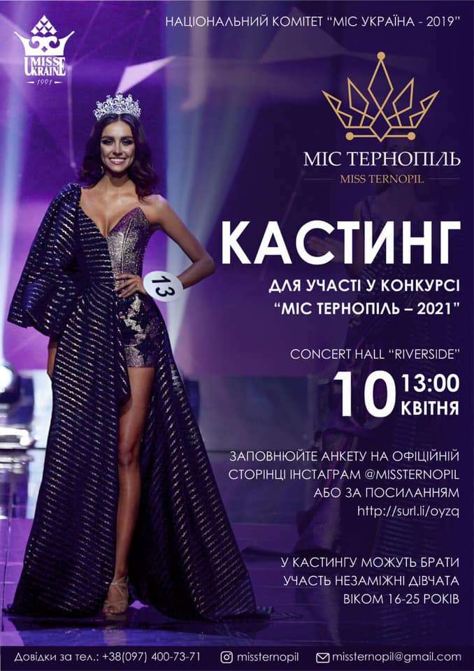 Зміни своє життя просто зараз!! Заповнюй анкету швидше та приходь на кастинг! І можливо саме Ти, вже цієї весни одягнеш на голову корону «Міс Тернопіль-2021». Заповнюте анкету за посиланням: