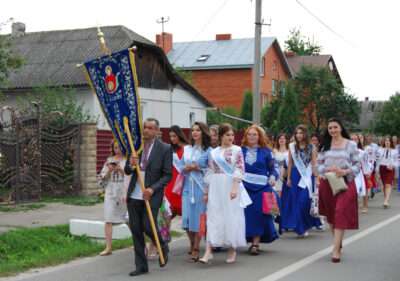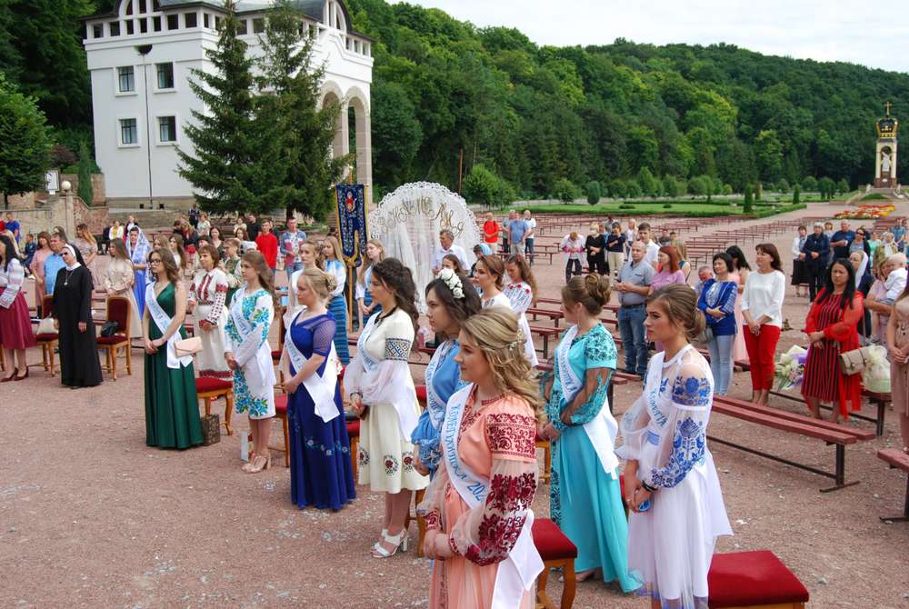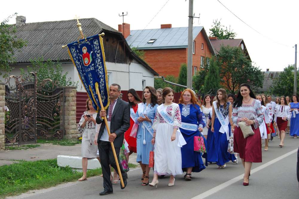 Дівчата, одягнуті у вишиті сукні, пройшли центральною вулицею до майдану на Чудотворному місці.