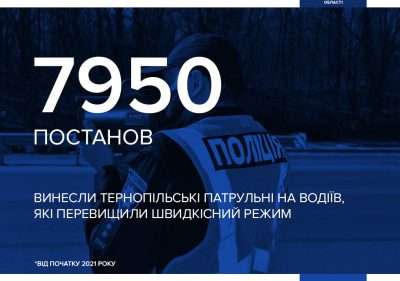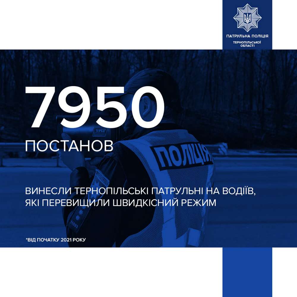 З початку року тернопільські патрульні винесли 7950 постанов на водіїв, які перевищили швидкісний режим руху транспорту.