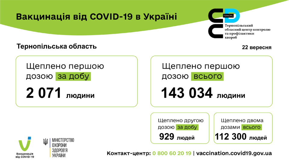 Вакцинація проти COVID-19 в Тернопільській області 22-го вересня: