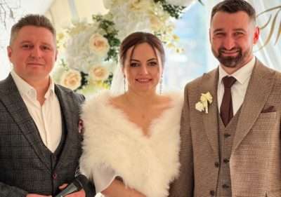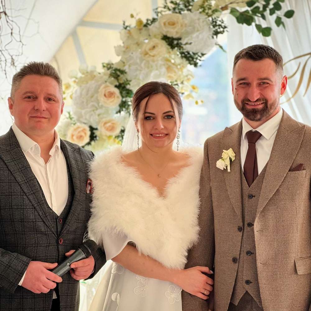 «Ще один особливий день у житті наших молодят – це народження нової української християнської сімʼї… Коли Тарас приїхав у відпустку з фронту на декілька днів у них з Тетяною завʼязались відносини, які переросли у зустрічання! А далі поранення, госпіталь у Харкові і Таня ні на мить не покидала своє щастя! Будьте щасливі Тарас і Тетяна», – зазначив ведучий їхнього свята.