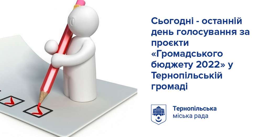 ЗАВЕРШУЄТЬСЯ ГОЛОСУВАННЯ ЗА ПРОЄКТИ Громадський бюджет Тернополя 2022