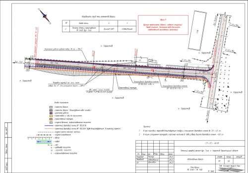 Існуюче покриття проїзної частини – асфальтобетон. Проектні ділянки мають 6 кутів повороту з радіусами від 50 м до 1500 м. Параметри в плані відповідають нормам для категорії житлової вулиці, що відповідають розрахунковій швидкості – 40 км/год.