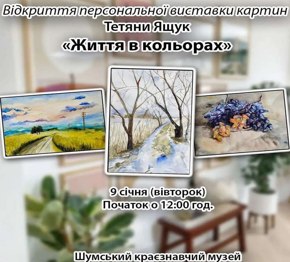 Шумський краєзнавчий музей запрошує жителів та гостей громади відвідати персональну виставку картин Тетяни Ящук «Життя в кольорах».