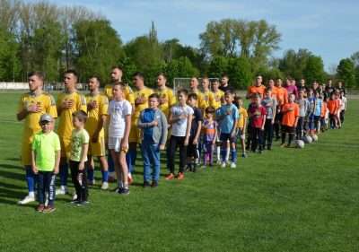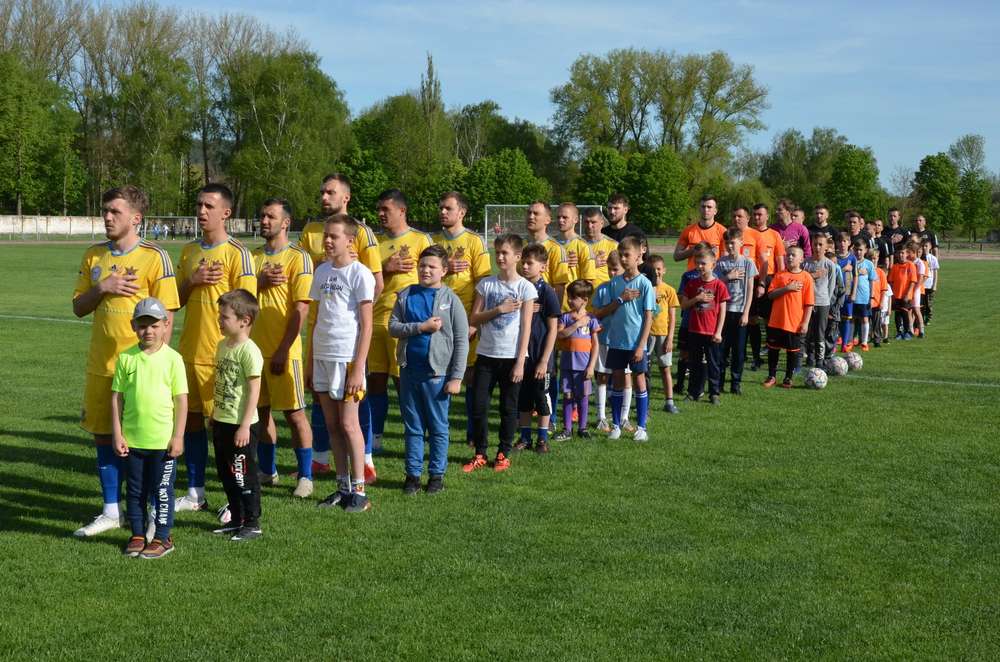 Гравців на футбольне поле вивели діти вимушених переселенців, котрі, тікаючи від війни, знайшли прихисток у Чортківській громаді.
